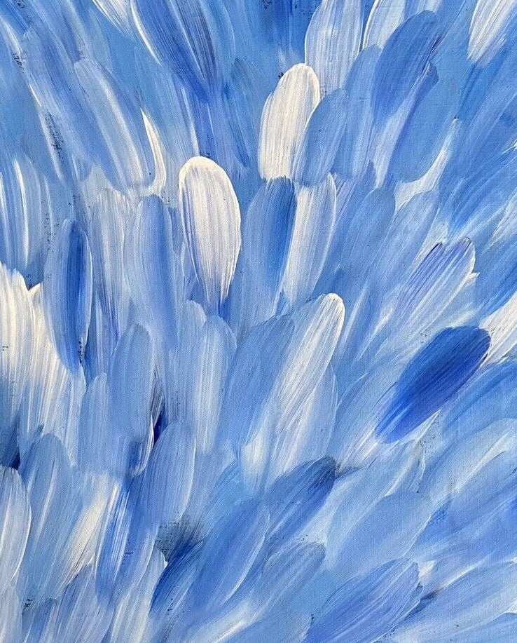 Esther has an incredible eye for detail and use of colour and is an emerging artist to watch, particularly if you like the bush medicine leaf style.