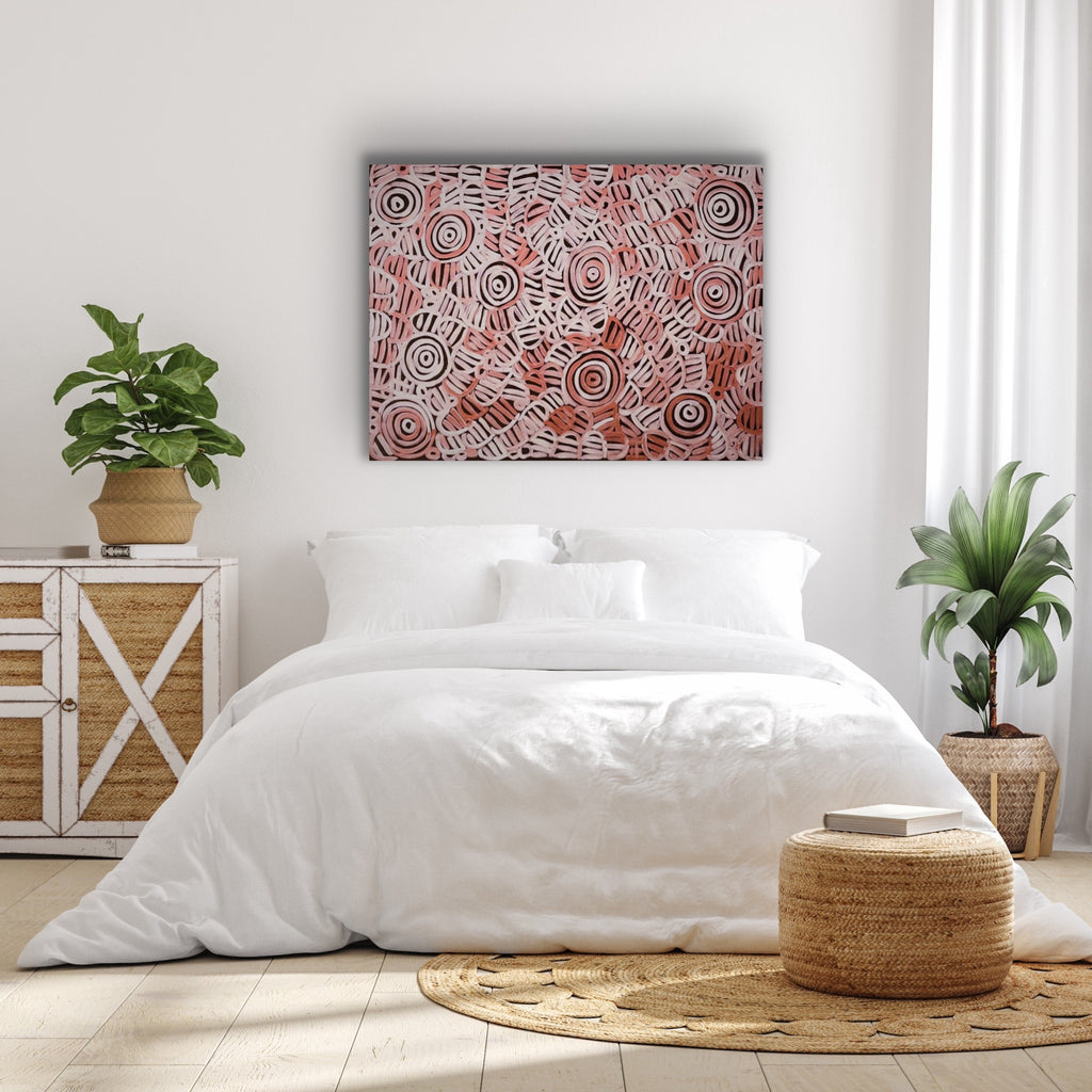 Louise Numina was born in 1976 and is an Anmatyerre artist from Ti Tree, 190km North of Alice Springs in Central Australia. She grew up on Stirling Station, a cattle station south of Tennant Creek along with her six sisters and three brothers, where she attended primary school and later moved to Alice Springs to attend Yirara College.